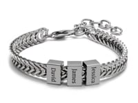 Looking for the perfect gift for dad that he'll love and proudly show off? Say hello to our Men's Laser Engraved Bracelet – a unique and fun accessory that's customizable with your kids' names! With a sturdy magnetic clasp and stylish beads, this durable stainless steel bracelet comes in 3 sizes and can hold up to 10 engravings. What a playful and practical present for any occasion!
